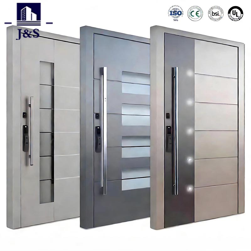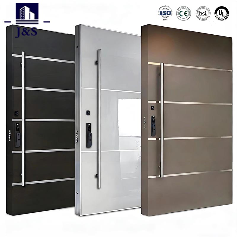 Pozvedněte svůj vstup s ocelovými bezpečnostními dveřmi od J&S, které nabízí důvěryhodný čínský výrobce za konkurenceschopnou cenu. Kombinuje robustní zabezpečení s moderní minimalistickou estetikou, vyznačuje se elegantními vodorovnými kovovými lištami a odolným rámem z nerezové oceli. Tyto ocelové bezpečnostní dveře, navržené pro ochranu proti krádeži a odolnost proti povětrnostním vlivům, jsou ideální pro obytné i komerční vchody. Jeho sofistikovaný matný povrch doplňuje současné exteriéry, zatímco hladký, snadno čistitelný povrch zajišťuje dlouhotrvající lesk. Splňuje nejvyšší bezpečnostní standardy a je k dispozici v přizpůsobených velikostech, aby se dokonale hodily k vašim dveřím, takže je ideální volbou pro kupující, kteří hledají spolehlivého dodavatele nebo tovární zdroj.